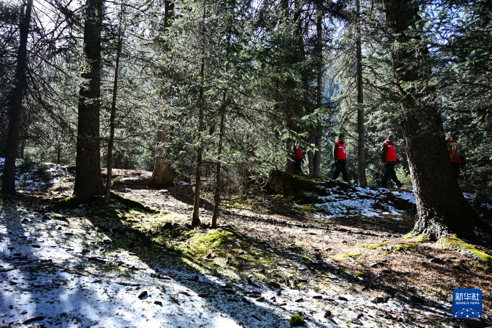 11月8日,护林员在青海省海北藏族自治州祁连县阿咪东索林区内巡护。新华社记者 齐芷玥 摄